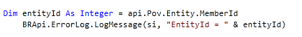 Example: api.Entity.GetLocalCurrencyId(api.Pov.Entity.MemberId)