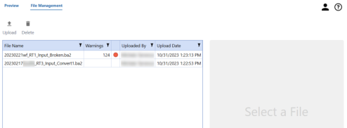 Use File Management to view all previously uploaded BAI files for the selected workflow, scenario, and time period.
