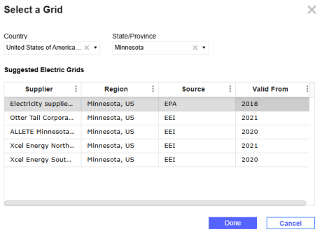 In the Select a Grid slide-out panel, from the Country drop-down menu, select a country.
