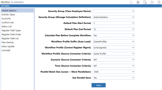 Select Yes to direct Calculate Plan to process the People Plan calculations in batches. This option improves the calculation process.