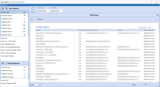Select or enter values in the fields above the report to filter the data shown in the report. For date fields, enter the dates in your local date format, for example MM/DD/YYYY.