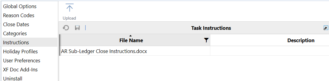 Select a file to remove from the task instructions list, then click Delete to remove it from the list. This does not permanently delete the file, but removes the file name from the OneStream database.