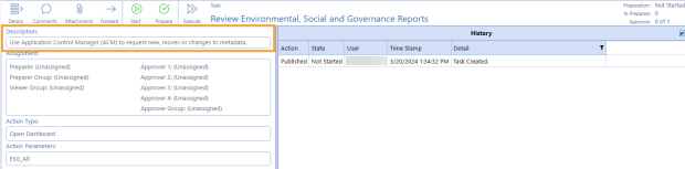 Descriptions can only be entered by Administrators. After the task is published, task Preparers and Approvers can view descriptions, but cannot add or edit descriptions.