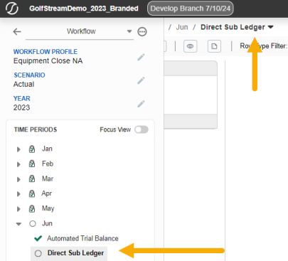 You can navigate to a specific month, time period, scenario, or workflow step of your choosing from the workflow navigation feature. Selecting an option will take you to the corresponding step. A new dropdown in the Workflow page title bar allows users to quickly toggle between Workflow Steps in a Time Period.
