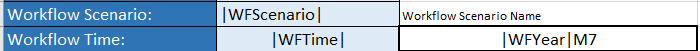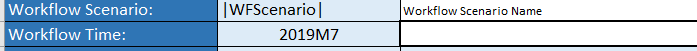 Enter the Workflow Time or make the template dynamic by entering the |WFTime| Substitution Variable. Workflow Time support two fields. The available cell immediately to the right is option representing the CubeTimeName. This field can be used when the Scenario’s Workflow Tracking Frequency is Yearly, and the Input Frequency is Monthly. For example, the Workflow Time would be |WFTime| or 2019 and the CubeTimeName would be the period to post, 2019M7.