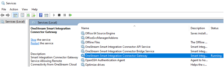 Navigate to OneStream Smart Integration Connector Gateway. The service should be running.