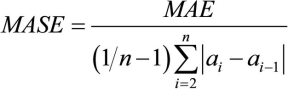 A measure that determines how effective forecasts generated through an algorithm are by comparing the forecast predictions with the output of a naïve forecasting approach.