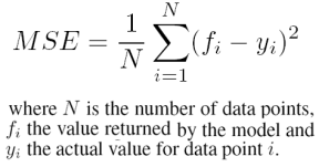 The average squared difference between the estimated values and the actual value. MSE is a risk function, corresponding to the expected value of the squared error loss.