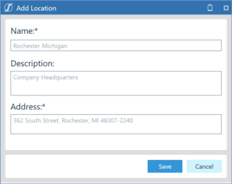 button, then use the Update Location dialog box to edit the name, description or address information for the selected location.