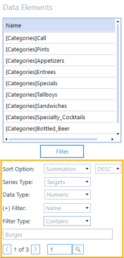 Tables for targets and features may contain a lot of entries. You can filter the displayed entries by changing the sort options and series type. You can also move through specific pages to locate entries.