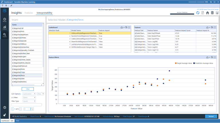 NOTE: Features and Feature Effects are only calculated for certain Machine Learning models.