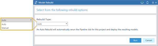 Manual Rebuild: Returns you to the Dataset page of the Data Section in the Model Build phase. You can walk through the Model Build phase, setting different configurations as needed.