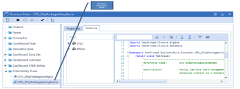 Shared Business Rules are reusable because the rule is written and stored centrally in the Business Rule Library. This means the same rule can be called or referenced by multiple platform components. For example, the Business Rule highlighted in the image below is a general Extensibility Rule. This rule can be executed from the Business Rule Editor, called by a Data Management Job or called by another Business Rule. Shared Business Rules are the code files seen in the tree when the OneStream Syntax Editor is open, they are organized by type, and named by the user who created the rule.