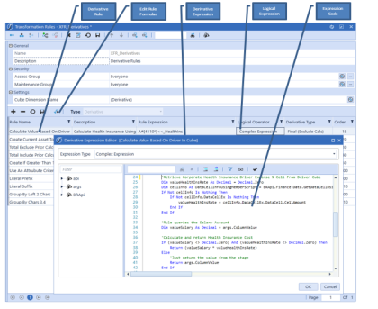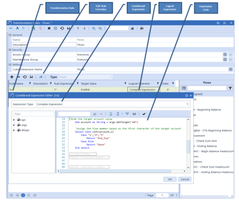 A Complex Expression is a Business Rule assigned to Data Source Dimensions, Derivative Rules, and Transformation Rules and execute within the Stage Engine during a transformation processing sequence. Complex Expressions provide the same level of syntax and logic capability that exist when writing a Stage Shared Business Rule. The primary reason for using a Complex Expression rather than a Stage Shared Business Rule is the logic being written has no reusability. Complex Expressions isolate the logic by associating it directly with a specific item.
