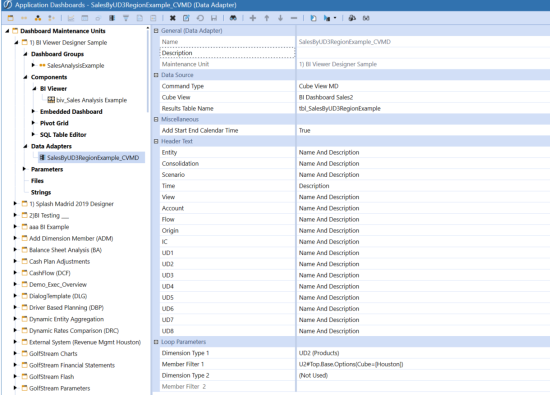 Choose a Cube View MD (Multi-Dimensional) as the source of a Data Adapter.  This Command Type will return the selected Cube View as a Multi-Dimensional Fact Table versus the reporting table that is returned by the Cube View Command Type. The results of the Cube View MD are Dimensions (Entity, Consolidation, Scenario, time, View, Account, Flow, Origin, IC, UD1-UD8) as columns. This simplifies the report building process in the BI Designer, Pivot Grid, and dashboard development. There are additional Loop Parameter options that can be selected here to include incremental information from the modified Cube View definition in the resulting tables. Adding on to what is defaulted, however, may have a slight impact on performance.