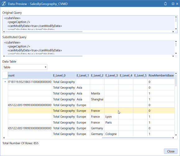 Results Table from the Cube View MD Data Adapter example above.