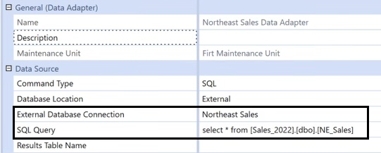 External Database Connection is the custom connection that you defined earlier,