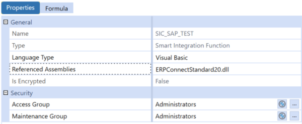Enter ERPConnectStandard20.dll in the Referenced Assemblies field.The Smart Integration Connector Gateway server will attempt to locate this DLL in the previously defined folder: Referenced BusinessRule AssemblyFolder.