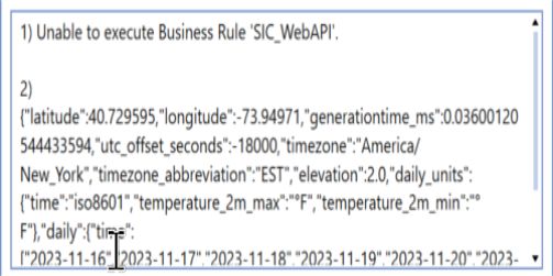 In this scenario, you have a WebAPI (IPaaS integration or another accessible REST API) to obtain and pass back data to OneStream. You can use the following remote business rule in Smart Integration Connector to invoke the API. If you have results that are in JSON format, you can convert them to a data table and send them back to OneStream. If the data from the WebAPI is in JSON, you can process the data in Smart Integrator Connector. Additionally, you can send the raw data back as a string to a data management job for further testing.