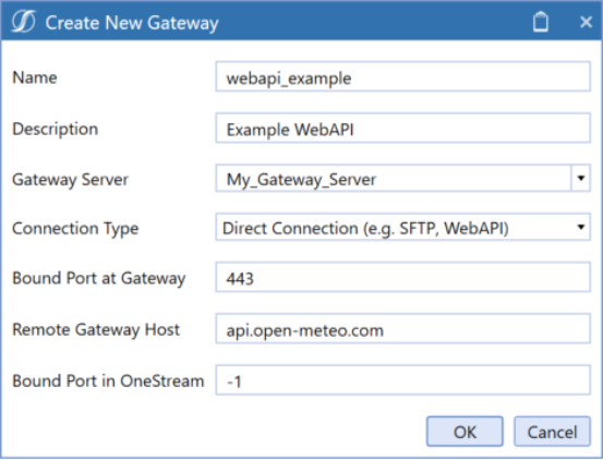 NOTE: This example assumes that you have completed the setup and installation process and configured a custom database connection in the System Configuration as a Gateway type. Refer to Define Database Location in OneStream for more information.