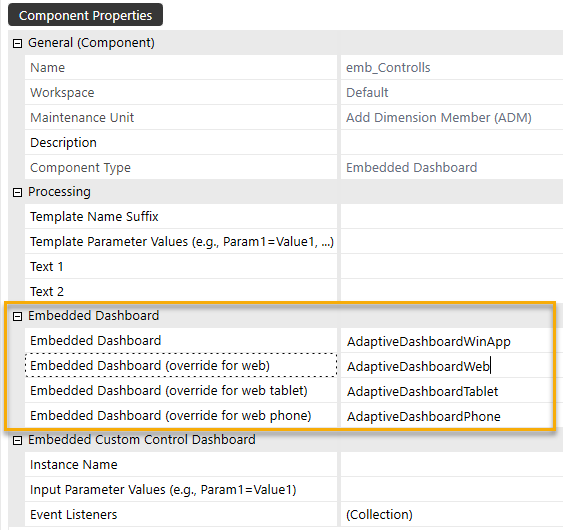 New client/device specific dashboards configurations allow a single root dashboard to render different embedded dashboards depending on the client or device type. (More details on the use of this configuration are described within the Multi-Client/Device Dashboard Design Approaches below)