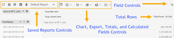 Saved Reports – Easily reference past grid configurations by saving reports. The default report will return the Pivot Grid to its initial configuration, while Create, Save, Save As, and Rename buttons manage custom reports. Find reporting functions in the Browser UX Pivot Grid Toolbar.