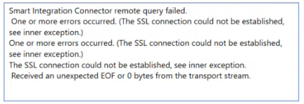 You should test your connection through a Data Adapter query to verify your access to Smart Integration Connector. An alternate SQL Query to pulling the first 10-50 rows is sufficient. See Data Adapters Example.