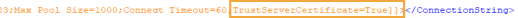 3. Add "Trust Server Certificate=True" to the end of the Connection String.