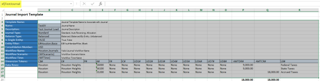 When loading journal entries via Excel a specific template must be created to determine the journal properties, the Dimensions to which the entries are being made, and the debit and credit amounts.
