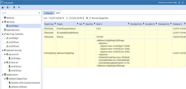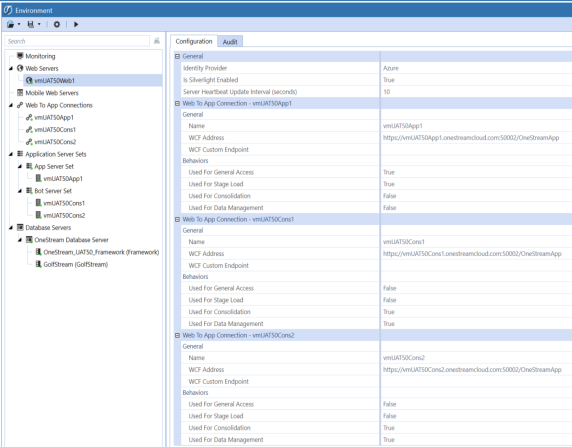 This section lists all the web servers that are participating in that environment. Each web server will display its configuration and its audited setting.