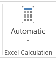 The Excel Calculation icon has the option of Automatic, Automatic Except for Data Tables, and Manual. It is recommended that the Calculation be set to Manual when using OneStream] spreadsheets because the Automatic setting results in an Excel re-calculation every time a OneStream’s interactive workbook changes data (e.g., when navigating a Quick View). However, this is not forced because a user might prefer Excel’s Automatic calculation, especially when there is not a significant amount of OneStream data in the workbook.