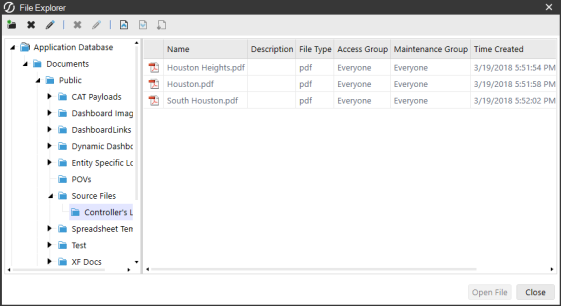 Use this option to save your file to the OneStream folder structure. You can save files to any location matching your security access. If the file was opened from a OneStream location, it will be saved back to that location. If it wasn't, File Explorer will open.