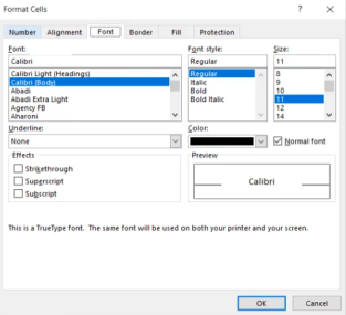 5. Select the cell, a group of cells, a column, or row to format.