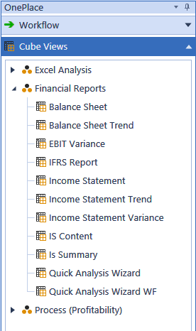 These Cube Views are complete and organized reports created specifically for the company’s data in the Application section. A Cube View is used to query Cube data and present it to the user in variety of ways. They can be made read-only, used for editing data, and can be used as the Data Source for several different display mechanisms.