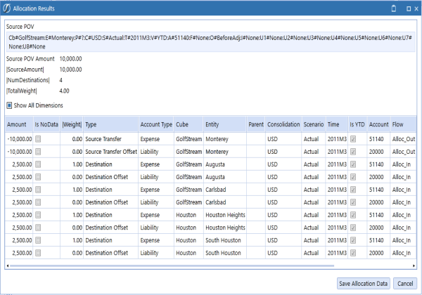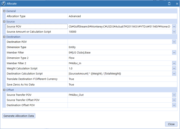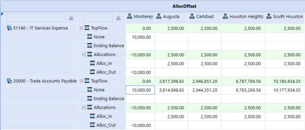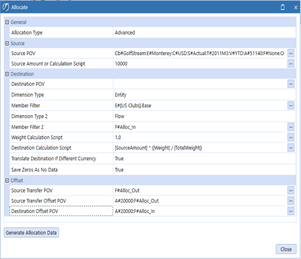 This is an optional field but required to create a balancing entry usually in a different Account in the Destination. In the example below, the intersection is a different Account and results in a different intersection from the Destination POV or Member Filter being updated to offset the allocated value updates in the Destination. In the example below, an expense in the Destination is being increased so the offset is to a payable (Liability) Account. This could have been offset to an equity clearing Account instead, as this is typical.