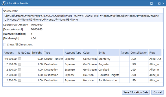 5. This displays the values that are going to be stored in the Origin Members based on what was stored in the Cell Detail form.