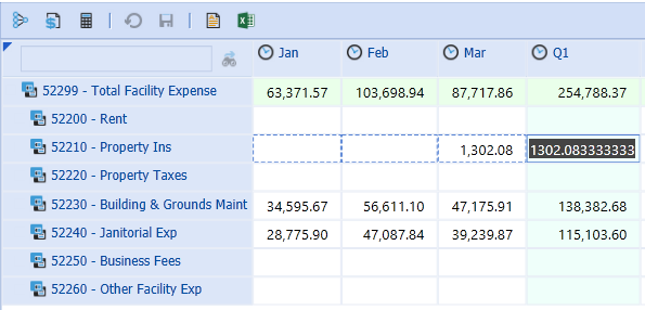 Spreading can be done from a Cube View while viewing it in the Data Explorer grid, in the Spreadsheet feature and Excel Add-in. User experience may differ slightly across these three user interfaces and more functions may be available in the Spreadsheet feature than others. This functionality provides the ability to spread values over selected cells.