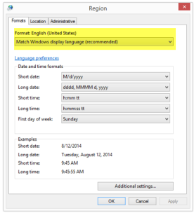 For consistency, we recommend that each user’s Culture setting match the Windows Regional settings of their primary computer.