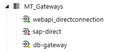 Status indicators in the list of gateways provide a visual indication of the Gateway status.