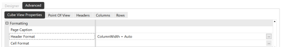 The new autofit is enabled when the global column width for a cube view is set to "Auto." When this is specified, each column width is set to the length of the widest cell found within the top 30 rows of that column. If any column has a specific width defined, that width setting will be utilized instead of autofit. This must be set at the global level and will not work for specific columns with width set to "Auto." The default minimum column width of 160px will not be used when "Auto" is set globally for cube view columns.