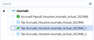 Click Quick Post. A green checkmark next to the journal in the Journals pane indicates the journal has been posted.