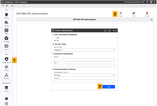 To create a new authentication, follow these steps: