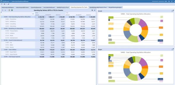 At runtime, the Pie Charts created in the BI Viewer will utilize the selected items (|!ChosenAccount!| from the Cube View to render its view.