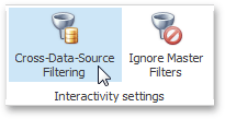 To enable filtering across data sources, use the Cross-Data-Source Filtering button in the Data Ribbon tab.