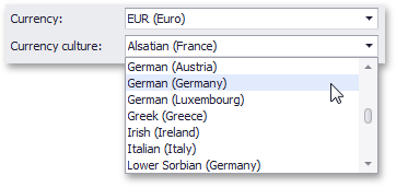 For regions with several cultures, you can also select the culture that will be used to format currency values.