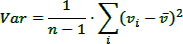 Var: An estimate of the variance of a population, where the sample is a subset of the entire population.
