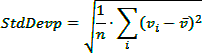 StdDevP: The standard deviation of a population, where the population is the entire data to be summarized.