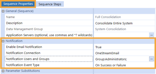 Enable email notifications upon the completion, failure, or both, of a Data Management Sequence.