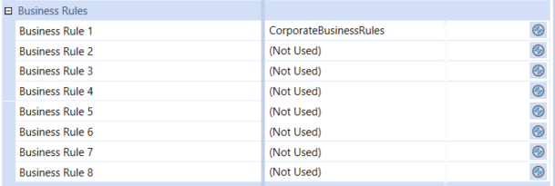 BusinessRule1…BusinessRule8: This property uses a drop-down option for attaching a Finance Business Rule. The Business Rule must be created as a Finance Business Rule for the Business Rule to appear as a selection option.