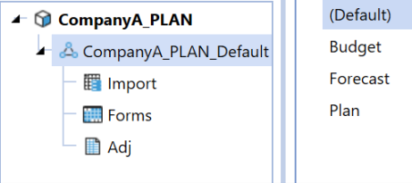 After creating the Cube Root for CompanyA_PLAN, the Scenario Types available for the PLAN Workflow Profiles would look like this: